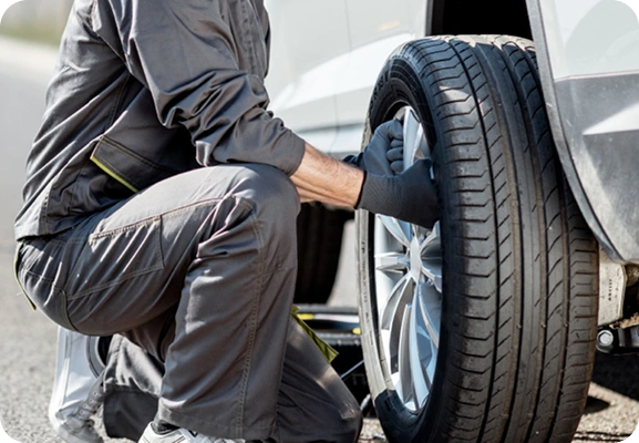 Flat tire assistance with professional tire changing service.